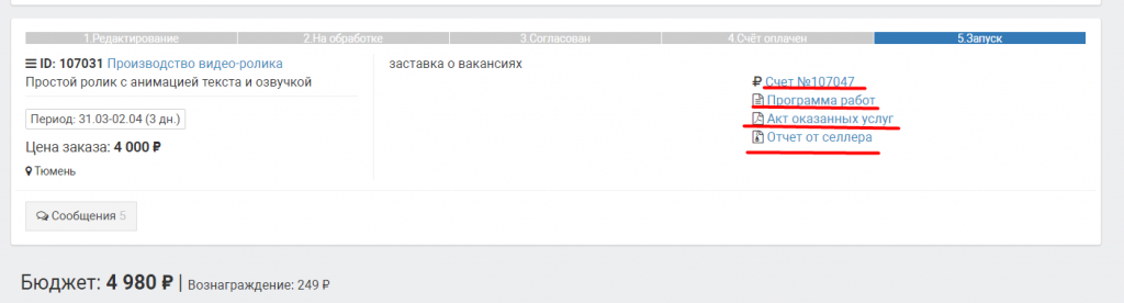 По окончанию размещения распечатайте закрывающие документы - акт оказанных услуг.